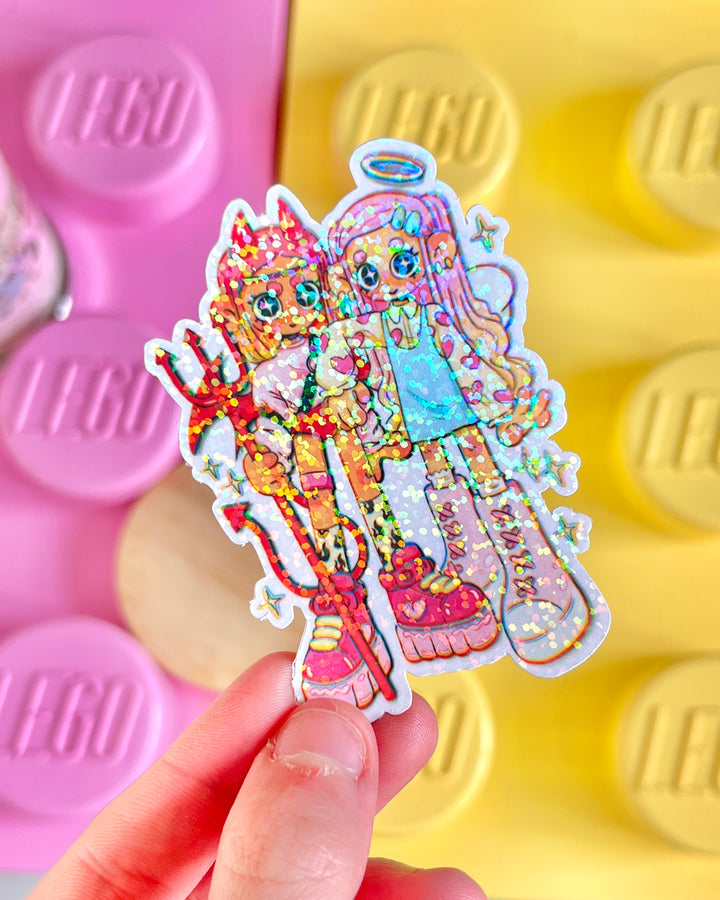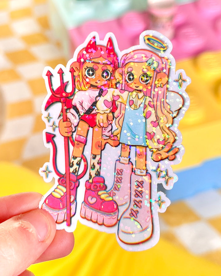 Demon & Angel - Glitter Die Cut sticker
